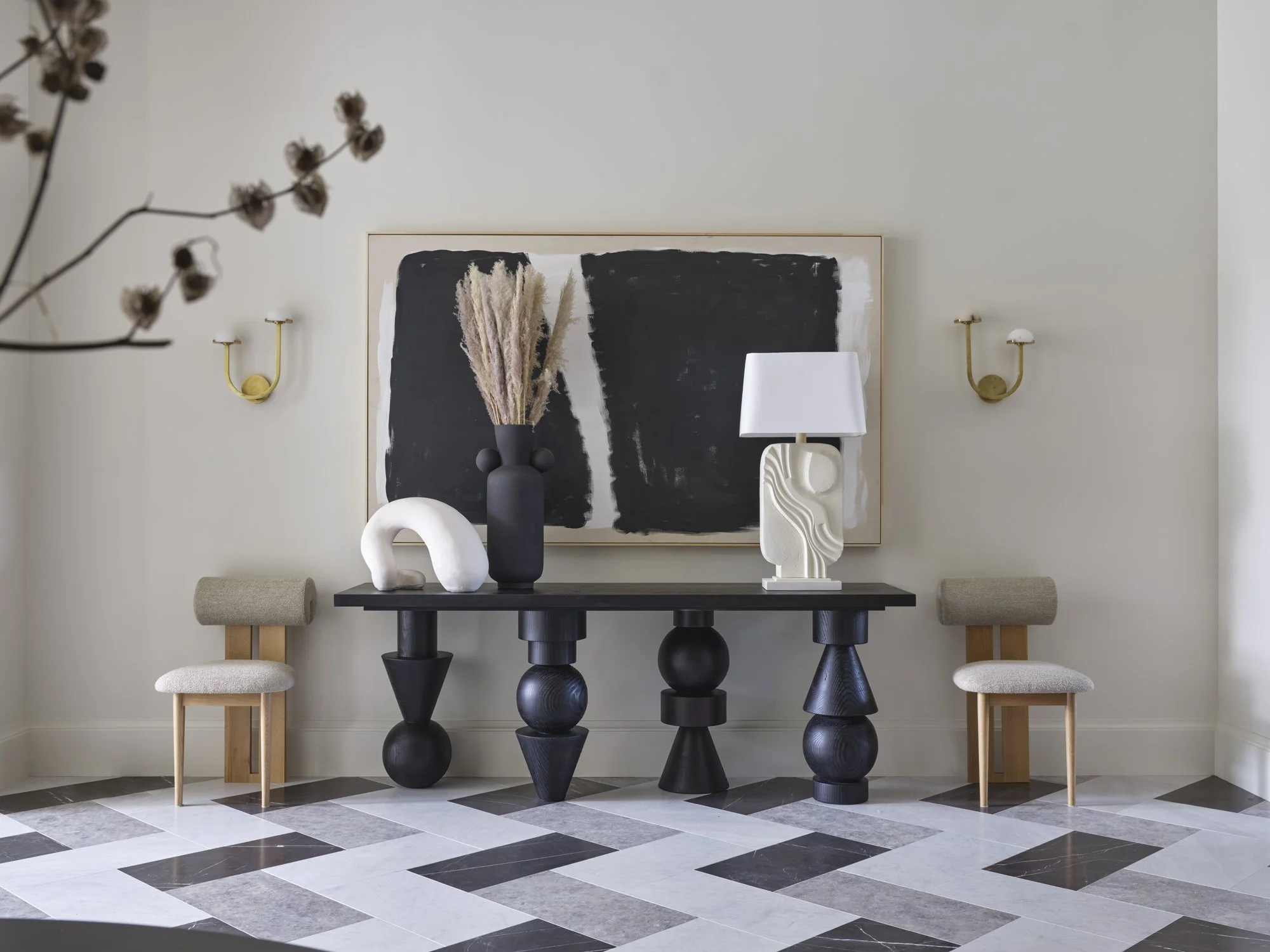 For a single father of two, the vision was a luxurious, hotel-like haven layered with furnishings that felt as fun and approachable as they were refined. Balancing budget with style, the design mixes high and low pieces with a palette of oatmeal, taupe, and gold—punctuated by his favorite blue and hints of rusty red.