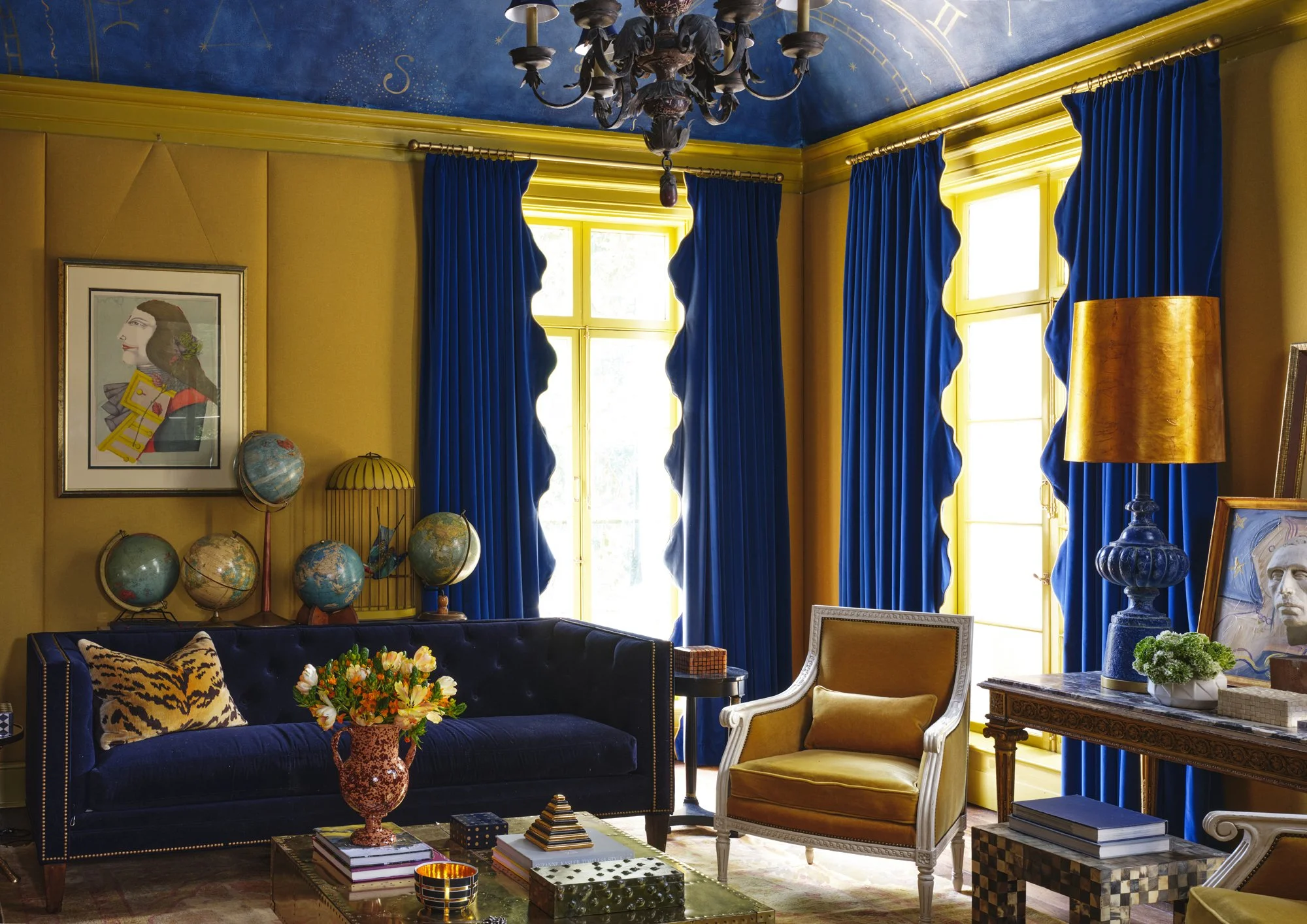 For a French family with four children, this 1926 Phillip Shutze Italian Palace—lovingly known as the Pink Palace—was restored to its former glory while adapted for modern life. Every detail honored the home’s history, from a garden-like conservatory with a tented-ceiling mural to the library’s marigold-upholstered walls and zodiac-painted ceiling. The ballroom’s chandeliers from Parma glitter alongside meticulously repaired neoclassical tapestries, while existing furnishings were refreshed and murals revived.