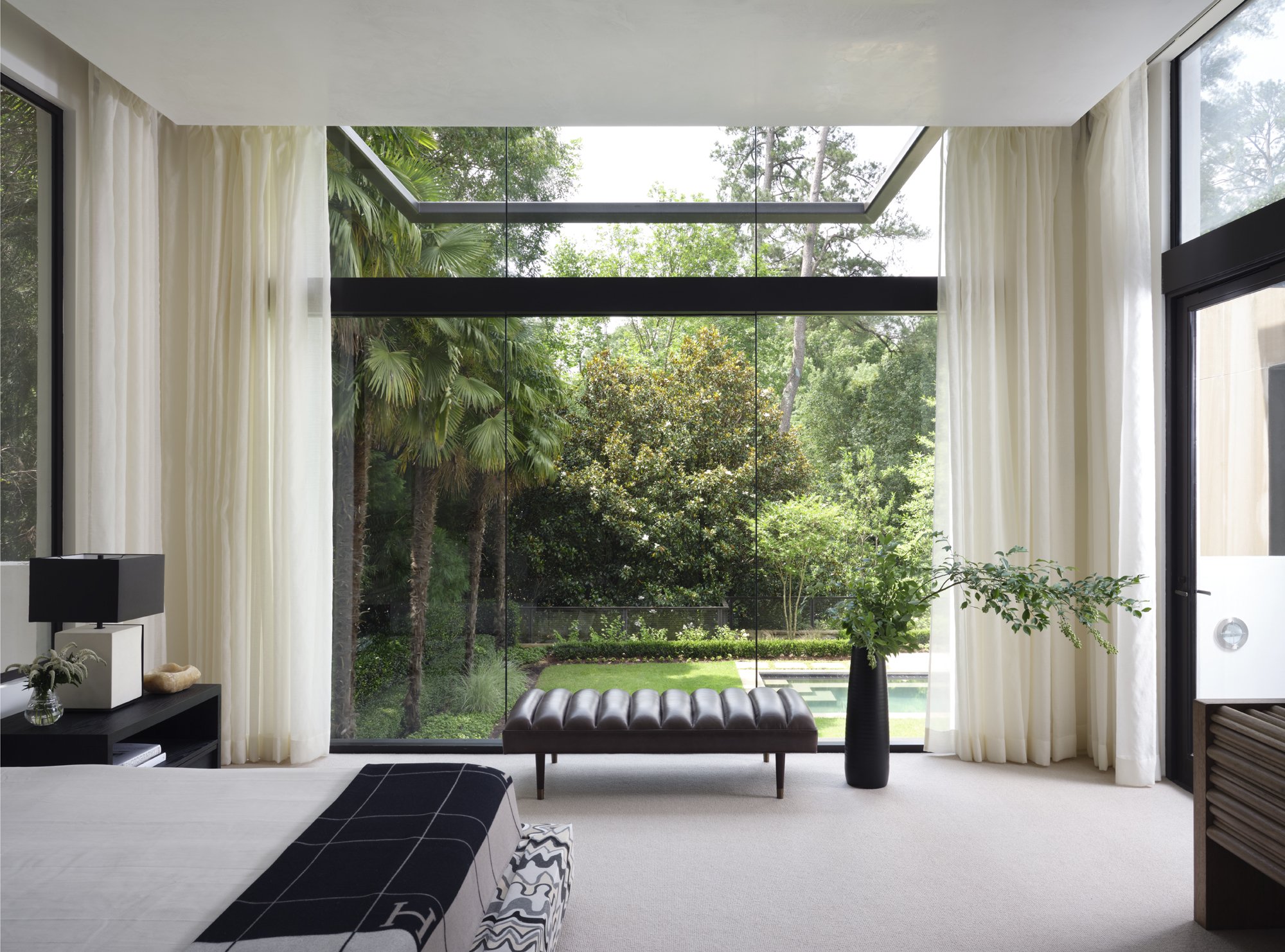 For empty nesters inspired by their home’s modern architecture, the goal was a collected, art-filled interior that felt contemporary yet warm. A high-contrast neutral palette, layered with rich textures, sets a sophisticated tone, while whimsical details keep the mood approachable. The sunken living room was raised to meet the kitchen, and a wall removed, creating a one-level flow perfect for daily living.